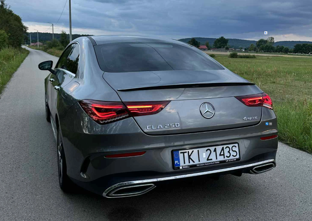 Sprzedam Mercedes CLA 250 4MATIC z 2022 roku z benzynowym silnikiem 2.0 o mocy 224 KM oraz automatyczną skrzynią biegów. Samochód oferuje bardzo dobre osiągi i wysoki komfort jazdy, a napęd 4MATIC zapewnia świetną trakcję w każdych warunkach.